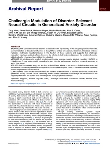 Cholinergic Modulation of Disorder-Relevant Neural Circuits in Generalized Anxiety Disorder.