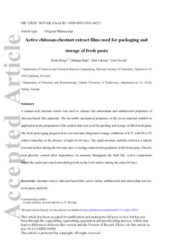 | Title: | Active chitosan–chestnut extract films used for packaging and storage of fresh pasta |