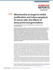 Title: | Mitochondria as target to inhibit proliferation and induce apoptosis of cancer cells: the effects of doxycycline and gemcitabine |