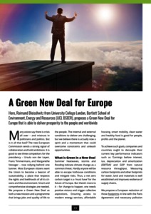 Here, Raimund Bleischwitz from University College London, Bartlett School of Environment, Energy and Resources (UCL BSEER), proposes a Green New Deal for Europe that is able to deliver prosperity to the people and worldwide.