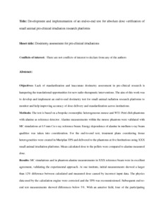 Title: | Development and Implementation of an End-To-End Test for Absolute Dose Verification of Small Animal Preclinical Irradiation Research Platforms |