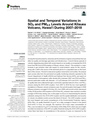 Title: | Spatial and Temporal Variations in SO₂ and PM₂.₅ Levels Around Kīlauea Volcano, Hawai'i During 2007–2018 |