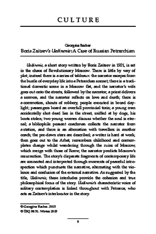 | Title: | Boris Zaitsev’s 'Uedinenie': A Case of Russian Petrarchism |