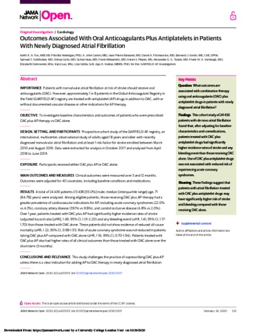 Title: | Outcomes Associated With Oral Anticoagulants Plus Antiplatelets in Patients With Newly Diagnosed Atrial Fibrillation |