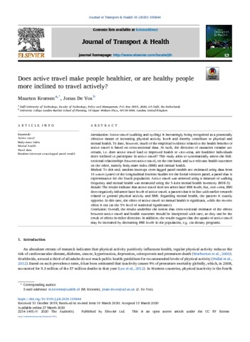 Title: | Does active travel make people healthier, or are healthy people more inclined to travel actively? |