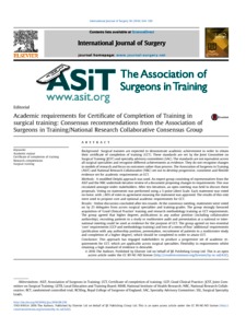 | Title: | Academic requirements for Certificate of Completion of Training in surgical training: Consensus recommendations from the Association of Surgeons in Training/National Research Collaborative Consensus Group |