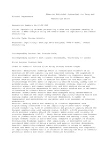 Background: Although there is considerable evidence of an association between impulsivity and cigarette smoking, the magnitude of this association varies across studies. Impulsivity comprises several discrete traits that may influence cigarette use in different ways. The present meta-analysis aims to examine the direction and magnitude of relationships between specific impulsivity-related traits, namely lack of premeditation, lack of perseverance, sensation seeking, negative urgency, positive urgency and reward sensitivity and both smoking status and severity of nicotine dependence in adults across studies and to delineate differences in effects across these relationships. / Methods: Ninety-seven studies were meta-analysed using random-effects models to examine the relationship between impulsivity-related traits and smoking status and severity of nicotine dependence. A number of demographic and methodological variables were also assessed as potential moderators. / Results: Smoking status and severity of nicotine dependence were significantly associated with all impulsivity-related traits except reward sensitivity. Lack of premeditation and positive urgency showed the largest associations with smoking status (r = 0.20, r = 0.24 respectively), while positive urgency showed the largest association with severity of nicotine dependence (r = 0.23). Study design moderated associations between lack of premeditation and lack of perseverance and smoking status, with larger effects found in cross-sectional compared to prospective studies. / Conclusions: Finding suggest that impulsivity is associated with an increased likelihood of being a smoker and greater nicotine dependence. Specific impulsivity-related traits differentially relate to smoking status and severity of nicotine dependence. Understanding the complexity of impulsivity-related traits in relation to smoking can help to identify potential smokers and could inform cessation treatment.