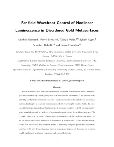 Title: | Far-Field Wavefront Control of Nonlinear Luminescence in Disordered Gold Metasurfaces |
