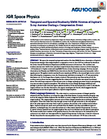 Title: | Temporal and Spectral Studies by XMM-Newton of Jupiter's X-ray Auroras During a Compression Event |