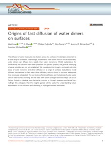 Origins of fast diffusion of water dimers on surfaces.