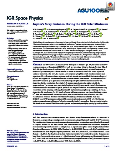 Title: | Jupiter's X‐rays 2007 Part 1: Jupiter's X‐ray Emission During Solar Minimum |