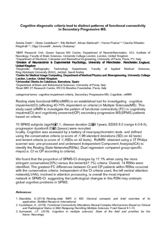 180 Cognitive diagnostic criteria lead to distinct patterns of functional connectivity in secondary progressive MS.
