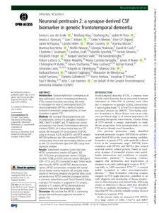 Neuronal pentraxin 2: a synapse-derived CSF biomarker in genetic frontotemporal dementia.