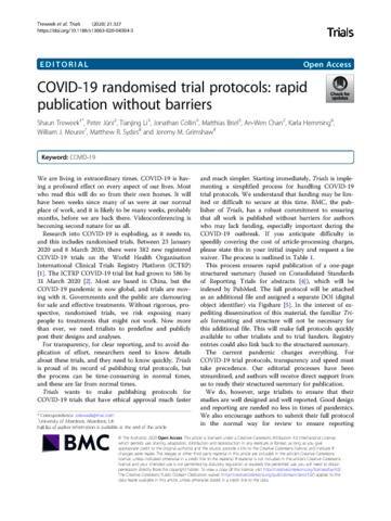 Title: | COVID-19 randomised trial protocols: rapid publication without barriers |