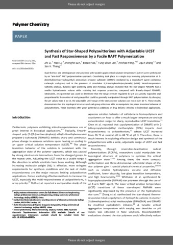 Title: | Synthesis of star-shaped polyzwitterions with adjustable UCST and fast responsiveness by a facile RAFT polymerization |