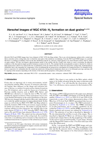 Title: | Herschel images of NGC 6720: H-2 formation on dust grains |