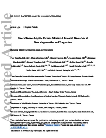 Title: | Neurofilament-Light in Former Athletes: A Potential Biomarker of Neurodegeneration and Progression |