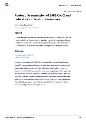 Routes of transmission of SARS-CoV-2 and behaviours to block it: a summary.