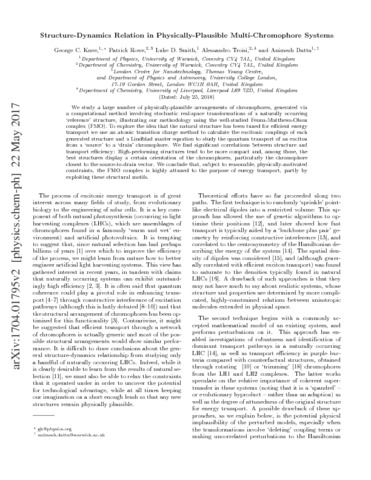 Title: | Structure-Dynamics Relation in Physically-Plausible Multi-Chromophore Systems |