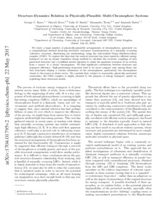 We study a large number of physically-plausible arrangements of chromophores, generated via a computational method involving stochastic real-space transformations of a naturally-occurring “reference” structure, illustrating our methodology using the well-studied Fenna–Matthews–Olson complex (FMO). To explore the idea that the natural structure has been tuned for efficient energy transport, we use an atomic transition charge method to calculate the excitonic couplings of each generated structure and a Lindblad master equation to study the quantum transport of an exciton from a “source” to a “drain” chromophore. We find significant correlations between structure and transport efficiency: High-performing structures tend to be more compact and, among those, the best structures display a certain orientation of the chromophores, particularly the chromophore closest to the source-to-drain vector. We conclude that, subject to reasonable, physically motivated constraints, the FMO complex is highly attuned to the purpose of energy transport, partly by exploiting these structural motifs.