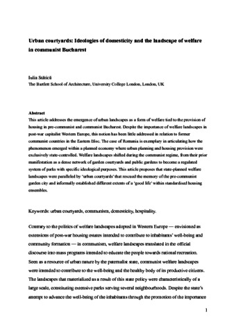 Title: | Urban courtyards: Ideologies of domesticity and the landscape of welfare in communist Bucharest |
