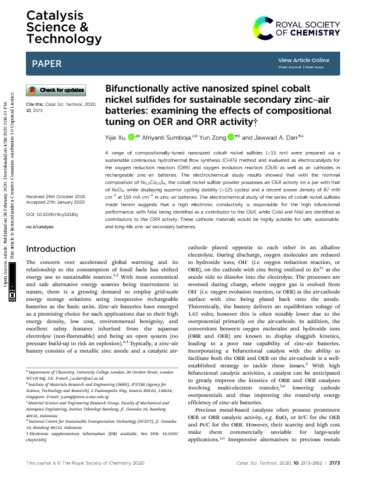 Darr_Bifunctionally active nanosized spinel cobalt nickel sulfides for sustainable secondary zinc-air batteries_VoR.pdf - Published Version Download (2MB) | Preview |