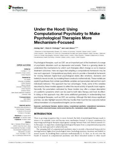 Mason_Under the Hood. Using Computational Psychiatry to Make Psychological Therapies More Mechanism-Focused_VoR.pdf - Published Version Download (446kB) | Preview |