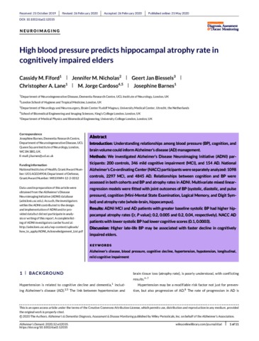 | Title: | High blood pressure predicts hippocampal atrophy rate in cognitively impaired elders |