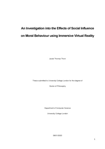 Title: | An investigation into the effects of social influence on moral behaviour using immersive virtual reality |