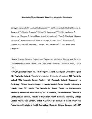 Title: | Assessing thyroid cancer risk using polygenic risk scores |