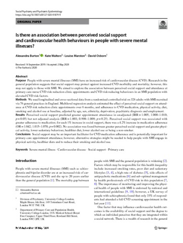 | Title: | Is there an association between perceived social support and cardiovascular health behaviours in people with severe mental illnesses? |