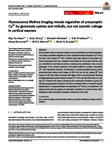 | Title: | Fluorescence lifetime imaging reveals regulation of presynaptic Ca2+ by glutamate uptake and mGluRs, but not somatic voltage in cortical neurons |