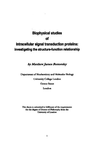 | Title: | Biophysical studies of intracellular signal transduction proteins: Investigating the structure-function relationship |