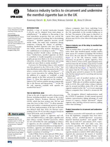 Title: | Tobacco industry tactics to circumvent and undermine the menthol cigarette ban in the UK |