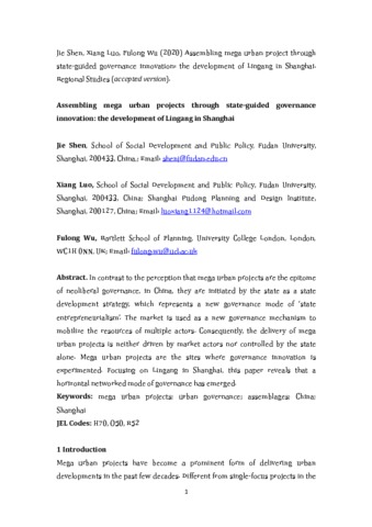Title: | Assembling mega urban project through state-guided governance innovation: the development of Lingang in Shanghai |