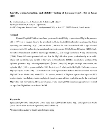 | Title: | Growth, characterization, and stability testing of epitaxial MgO (100) on GaAs (100) |