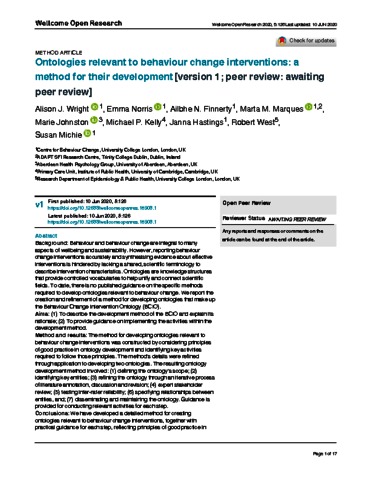 Ontologies relevant to behaviour change interventions: a method for their development [version 1; peer review: awaiting peer review].
