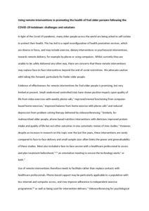 Using remote interventions in promoting the health of frail older persons following the COVID-19 lockdown: challenges and solutions.