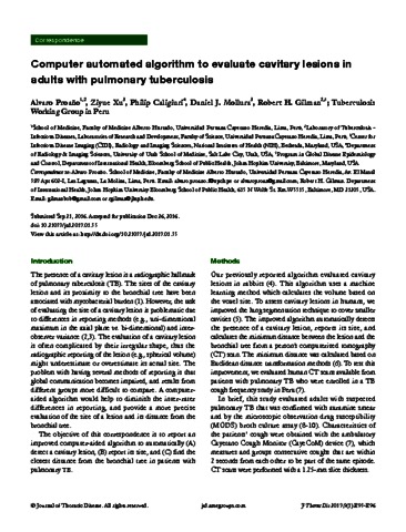 Computer automated algorithm to evaluate cavitary lesions in adults with pulmonary tuberculosis.