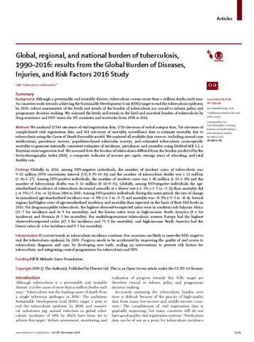 Global, regional, and national burden of tuberculosis, 1990-2016 results from the Global Burden of Diseases, Injuries, and R.pdf - Published Version Download (1MB) | Preview |