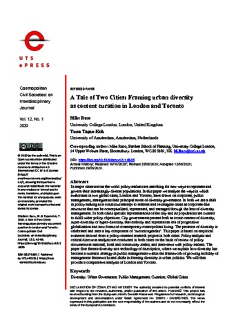 Title: | A Tale of Two Cities: Framing urban diversity as content curation in London and Toronto |