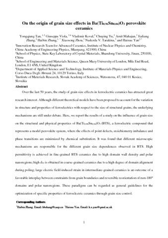 Title: | On the origin of grain size effects in Ba(Ti0.96Sn0.04)O3 perovskite ceramics |