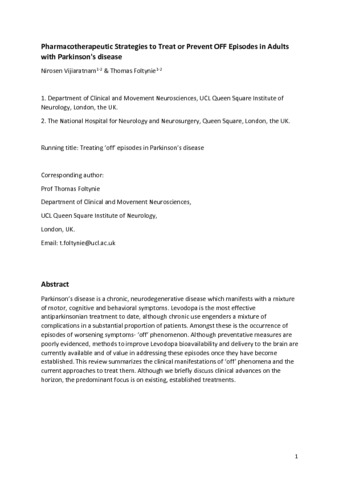 Therapeutic Strategies to Treat or Prevent Off Episodes in Adults with Parkinson's Disease.