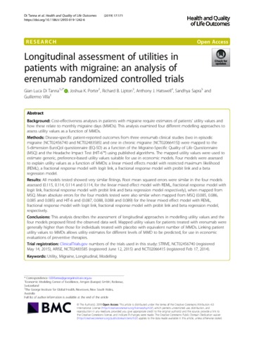 Longitudinal assessment of utilities in patients with migraine an analysis of erenumab randomized controlled trials.pdf - Accepted Version Download (1MB) | Preview |