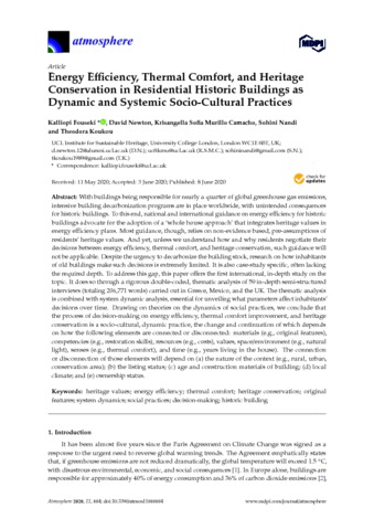 Energy effciency, thermal comfort, and heritage conservation in residential historic buildings as dynamic and systemic socio-cultural practices.