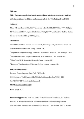 Epidemiology of visual impairment, sight-threatening or treatment-requiring diabetic eye disease in children and young people in the UK: findings from DECS.