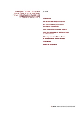 | Title: | Gobernanza urbana y retos de la regulación del alquiler vacacional y de las plataformas digitales en las grandes ciudades europeas |