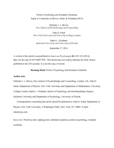 Title: | Positive Psychology and Romantic Scientism |