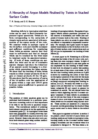 A Hierarchy of Anyon Models Realised by Twists in Stacked Surface Codes.