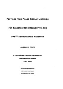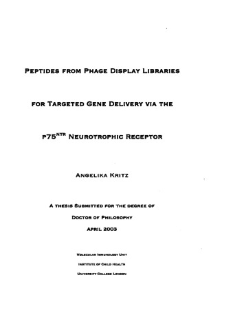 Title: | Peptides from phage display libraries for targeted gene delivery via the p75NTR neurotrophic receptor |